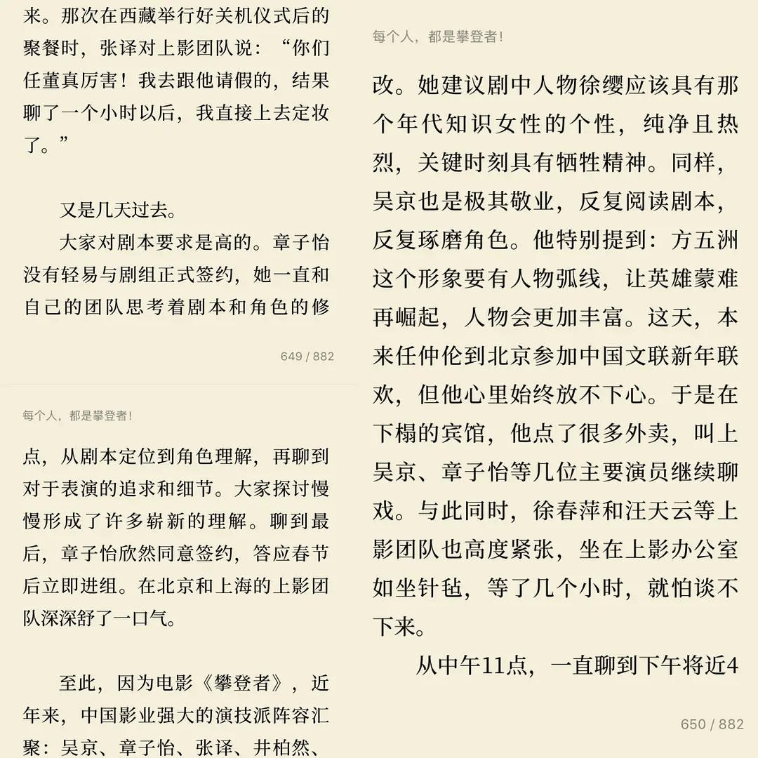 当时《攀登者全纪录》里,上影集团董事长任仲伦亲自日以继夜修改剧本,前前后后改了十七八稿,直到章子怡满意了才正式签约。电影上映后也传出抱着转圈、在怀里咽气的桥段,都是章子怡在拍摄现场临时要求加上去的。